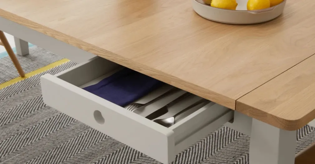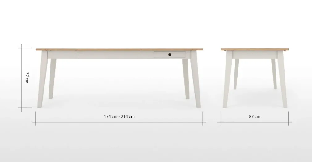 Medidas de la Mesa: Alto: 77 cm | Ancho: 174 – 214 cm | Profundo: 87 cm.