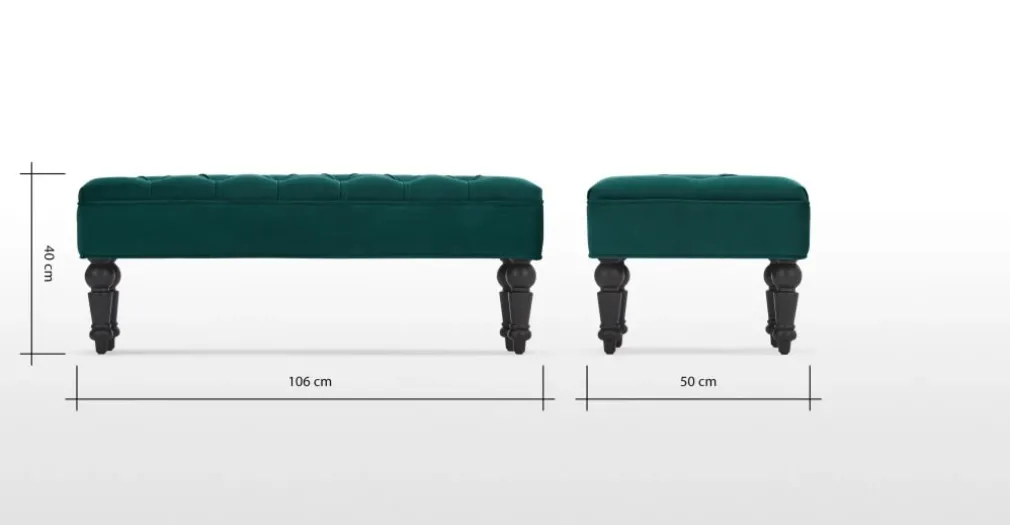 MEDIDAAltura (cm): 40Anchura (cm): 106Profundidad (cm)50:Altura de las patas (cm). 22Dimensiones del asiento (HWD): 40 x 50 x 106Altura de las patas: 22cm |