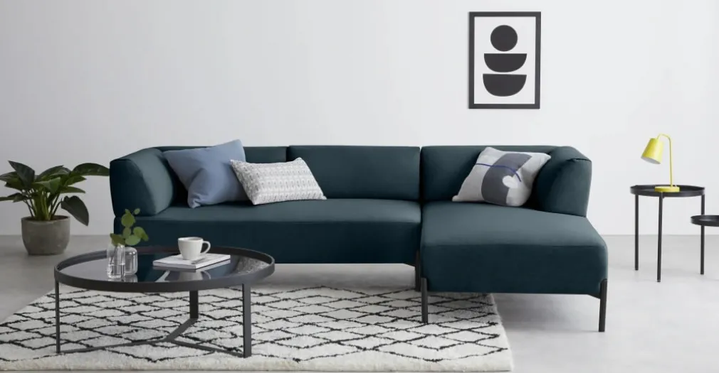 Sofá en L con Chaise Longue a la Derecha Kiva – Azul Egeo