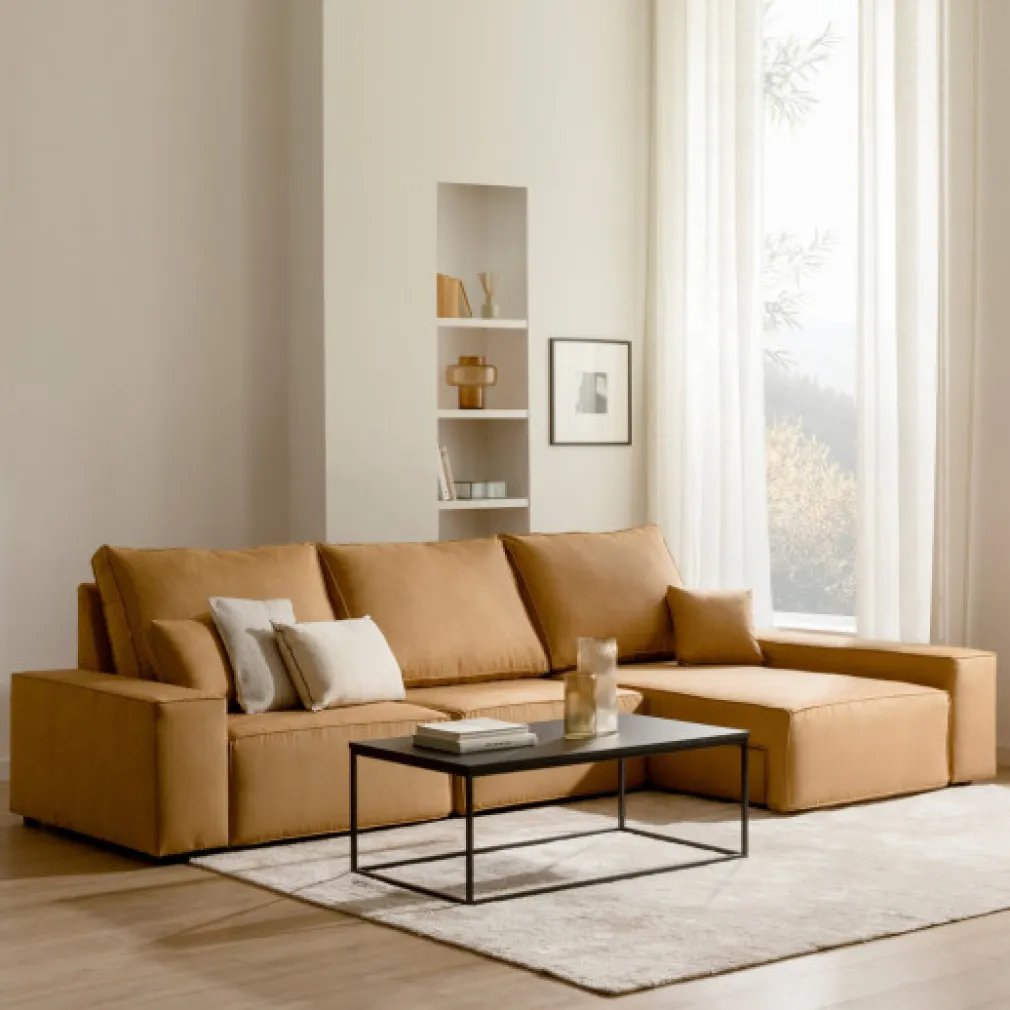 Sofá Seccional Loft con Chaise Longue a la Derecha – Camel