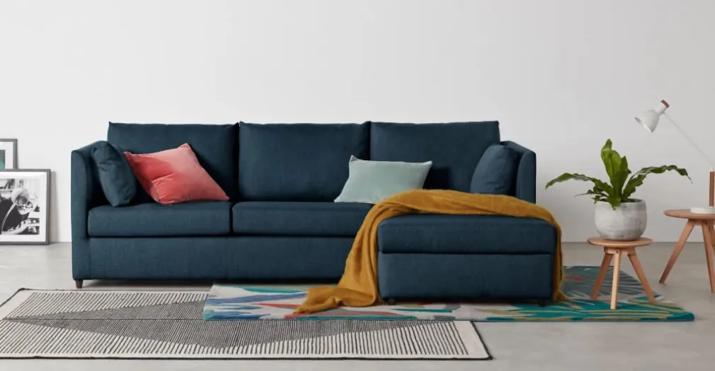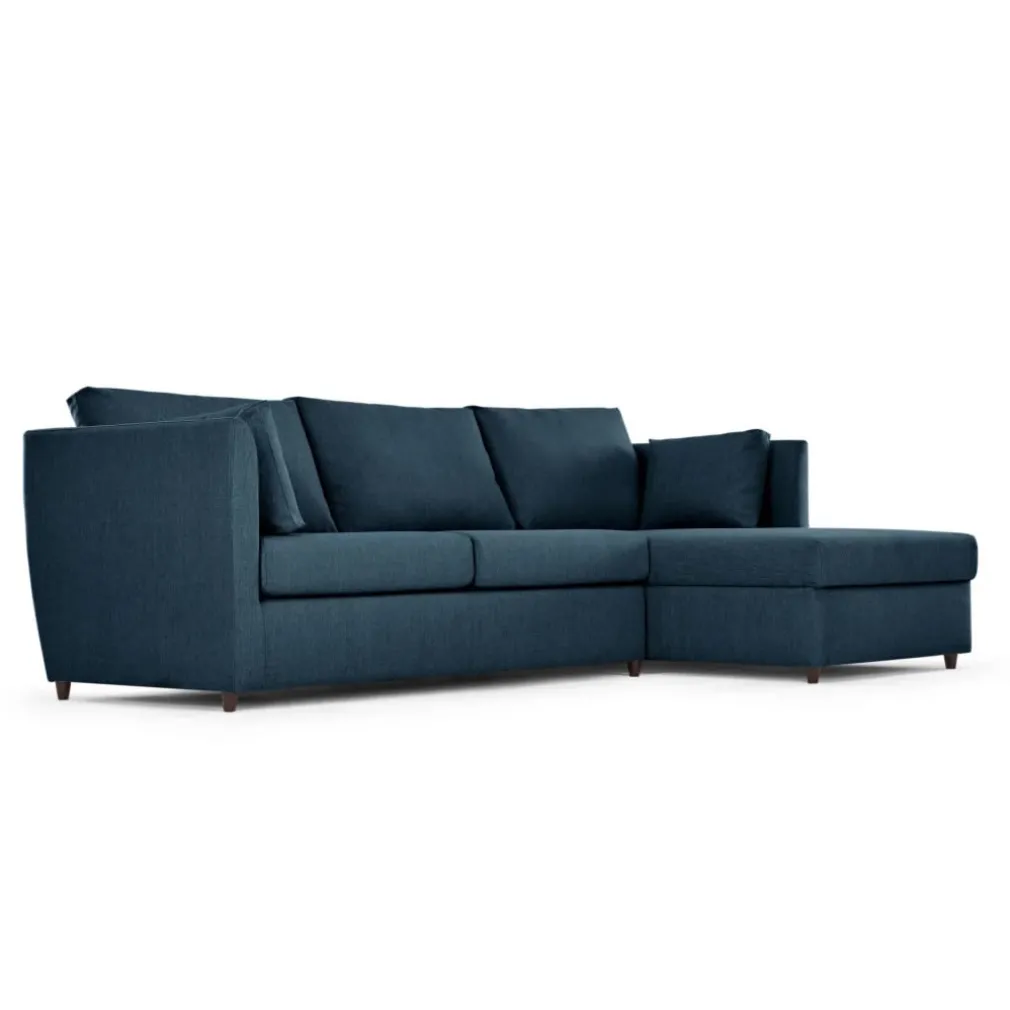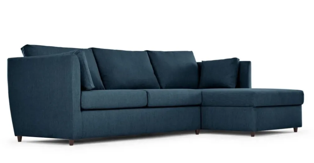 El Sofá en L Milner de Yolodecoro se convierte en una pieza de lujo y de primera elección para compartir en familia. Ostenta de un magnífico tapizado, amplio espacio de almacenaje, levantas la chaise longue y tendrás a la mano cojines, sábanas y lo que desees conservar cerca de tu comodidad.
