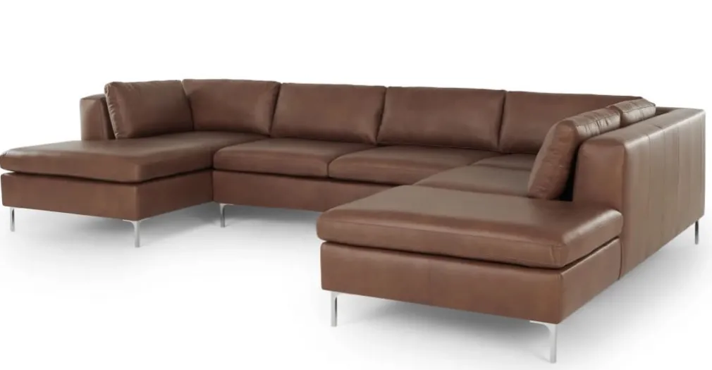 Sofá en L con Chaise Longue a la Derecha Monterosso – Marrón y Nogal