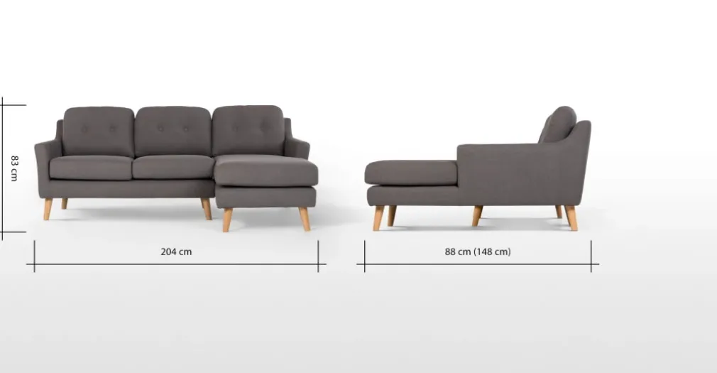 Medidas de Sofá: Alto: 83 cm | Ancho: 204 cm | Profundo: 88/148 cm