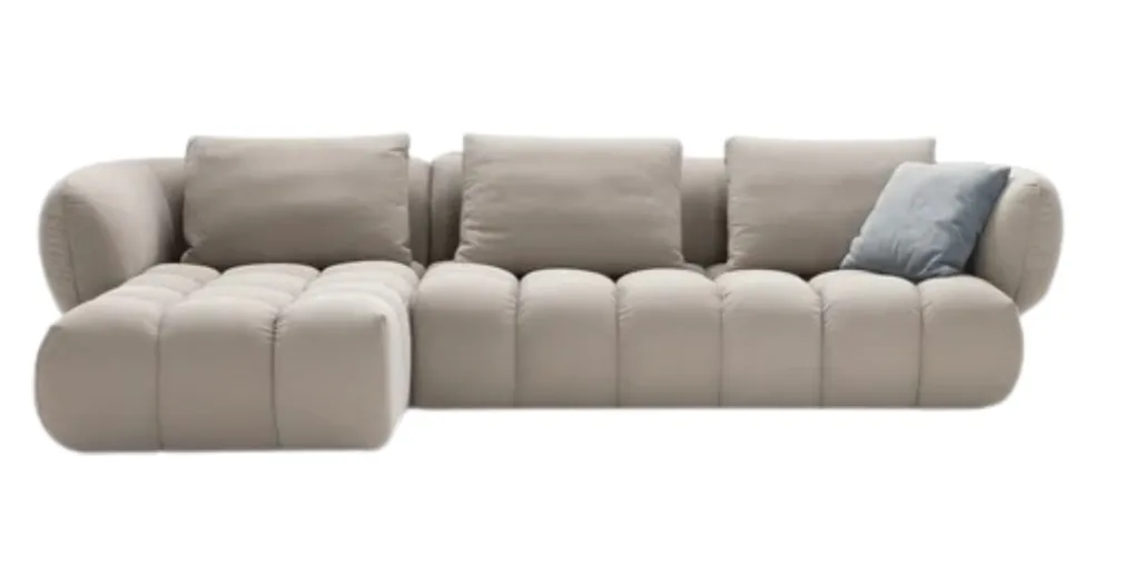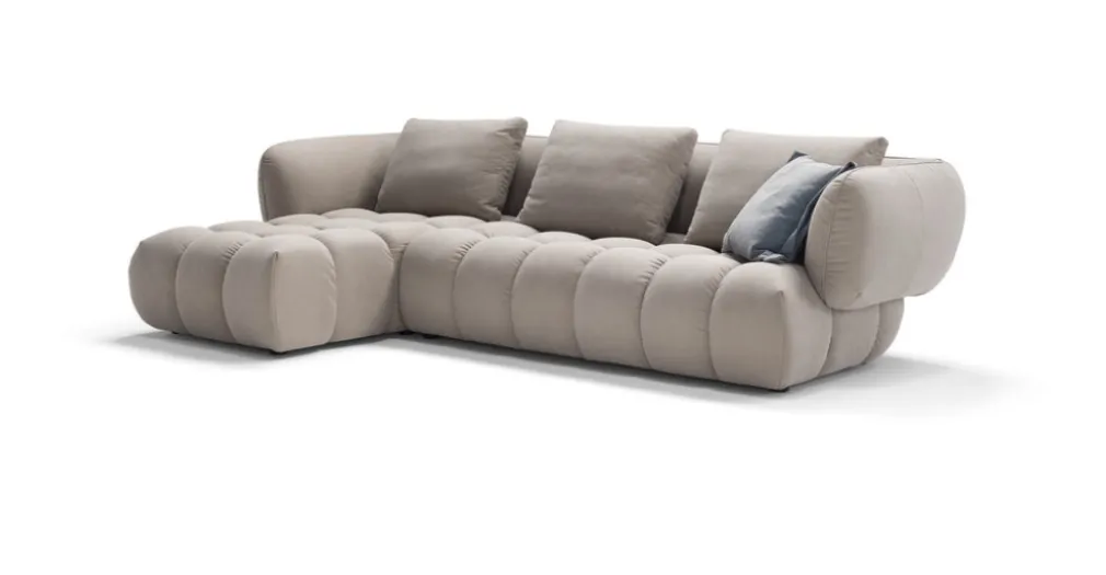 El Sofá Wenders con chaise longue destaca por su respaldo acolchado y envolvente, que se integra armoniosamente con los reposabrazos, ofreciendo un efecto extra-confort. Su diseño contemporáneo y elegante lo convierte en la pieza ideal para cualquier sala de estar, proporcionando tanto estilo como comodidad.