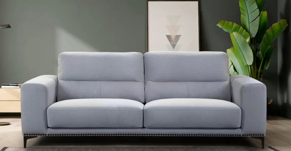 El Sofá Anastassia destaca por sus líneas sencillas y rectas, que aportan un aire contemporáneo a cualquier espacio. Su original bastidor, adornado con tachas, le confiere un toque de carácter único y distinguido, convirtiéndolo en una pieza central ideal para su salón.