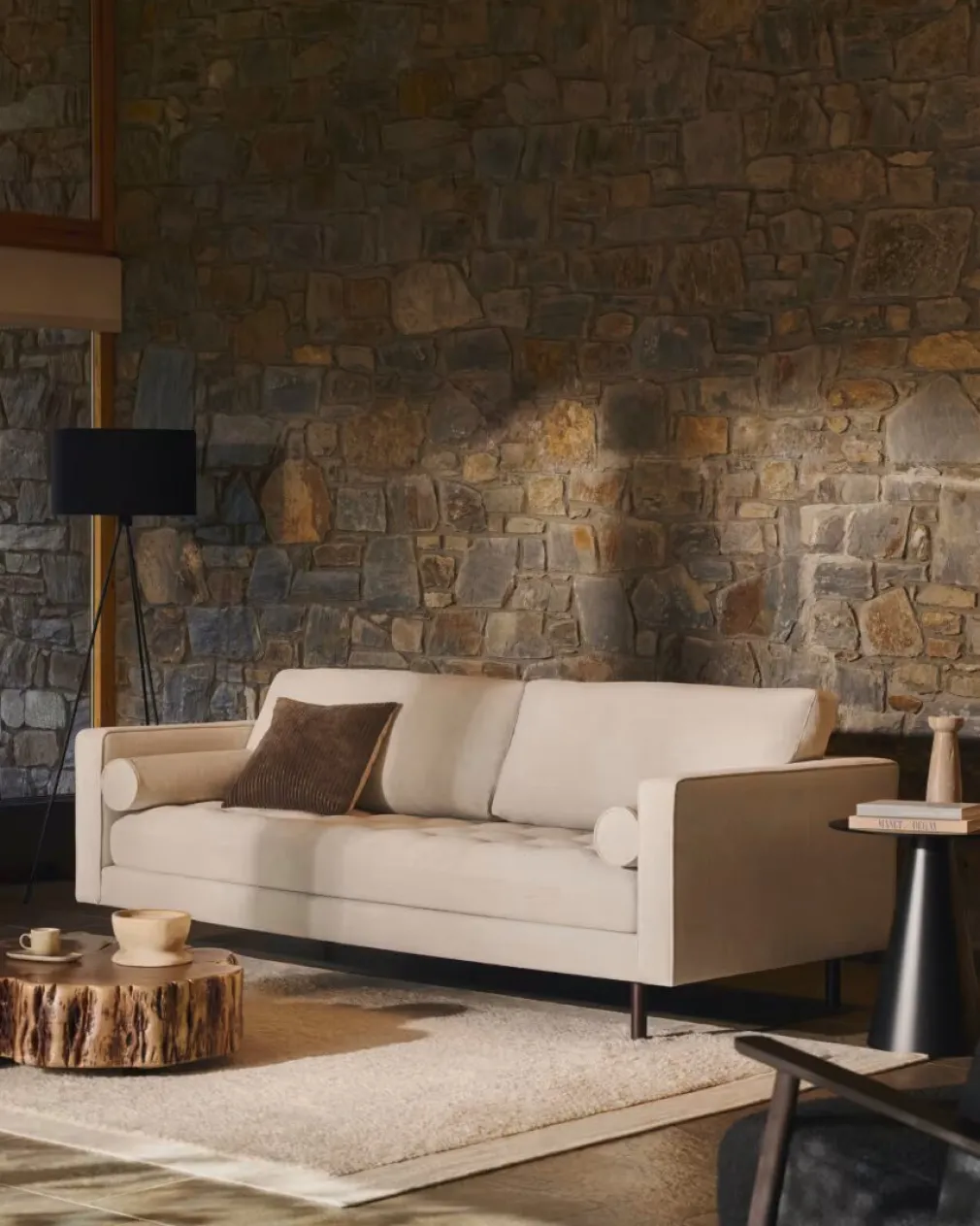 El Sofá Debra es sofisticado, con patas de madera, fusiona a la perfección un diseño vintage y práctico. Su tapizado no solo añade un aire de elegancia, sino que también asegura comodidad y resistencia. Perfecto para cualquier sala de estar, este mueble se convierte en el punto focal, creando un ambiente cálido y decente.