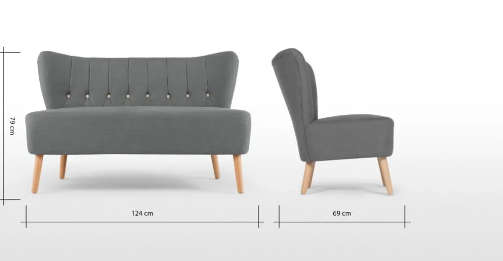 Respaldo dócilmente curvado, asiento cuadrado redondeado y patas de madera en ángulo, el Sofá 2 Cuerpos Charley es sencillamente irresistible. Amamos los detalles de costura en el respaldo y por supuesto, los botones que le agregan el toque moderno.