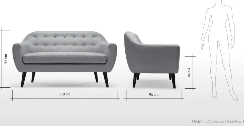Medidas de Sofá: Largo: 148 cm | Profundo: 85 cm | Alto: 86 cm