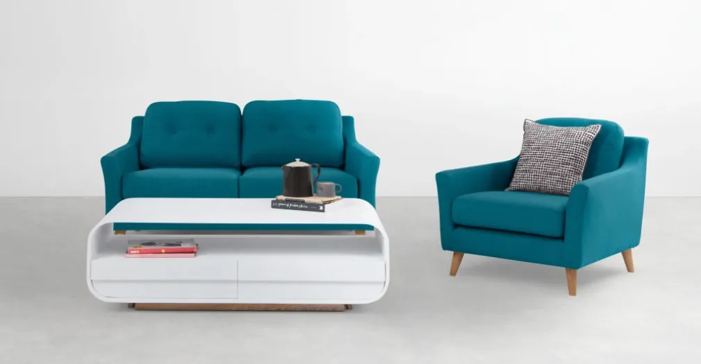 La comodidad y el aspecto siempre son importantes en un sofá, es por ello que te traemos esta novedosa propuesta con el Sofá de 2 Cuerpos Rufus, cuenta con líneas redondeadas, su respaldo tiene un diseño de capitoné, el asiento está conformado por un confortable cojín y descansa sobre una estructura de cuatro patas cónicas de madera maciza dándole el toque de diseño contemporáneo y estilo retro renovado, creando la fórmula perfecta para tener en tu hogar un sofá atractivo, cómodo, digno de revistas de moda, confeccionado en Perú por Yolodecoro.