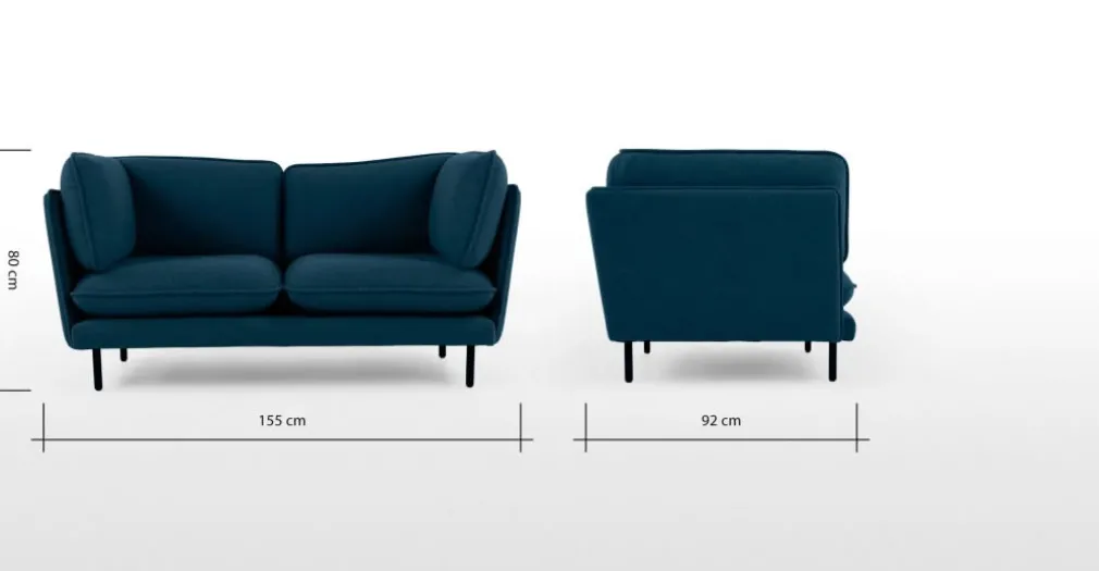 Sofá de 2 Cuerpos Wes – Azul Cerceta Selecto
