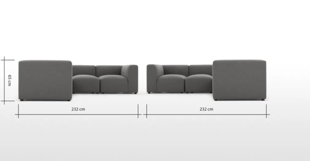 Medidas de Sofá: Alto: 65cm | Largo: 232cm | Profundo: 85cm