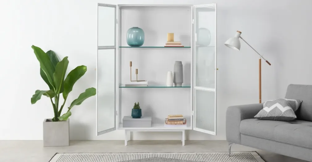 Vitrina de almacenamiento Marden – Blanco y cristal