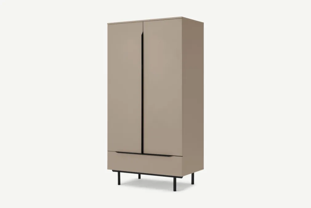 Las patas en acabado metálico no solo proporcionan estabilidad, y a pesar de su diseño compacto, este armario ofrece un espacio de almacenamiento excepcional.
