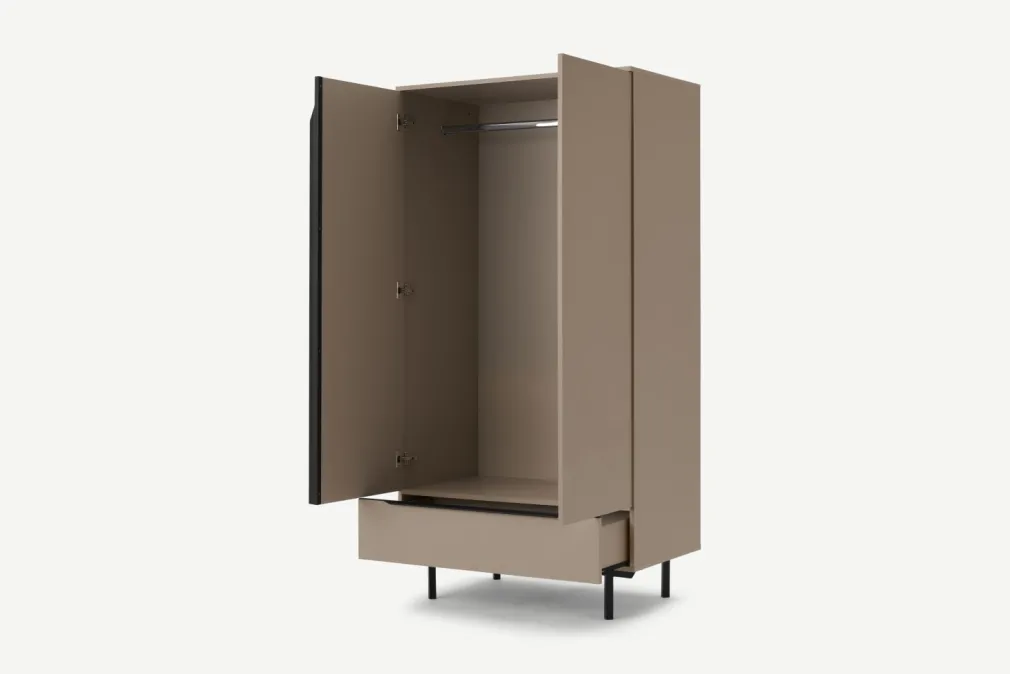 Con líneas rectas y detalles cuidadosamente seleccionados, este armario es una declaración de estilo moderno que se integra armoniosamente en cualquier habitación.