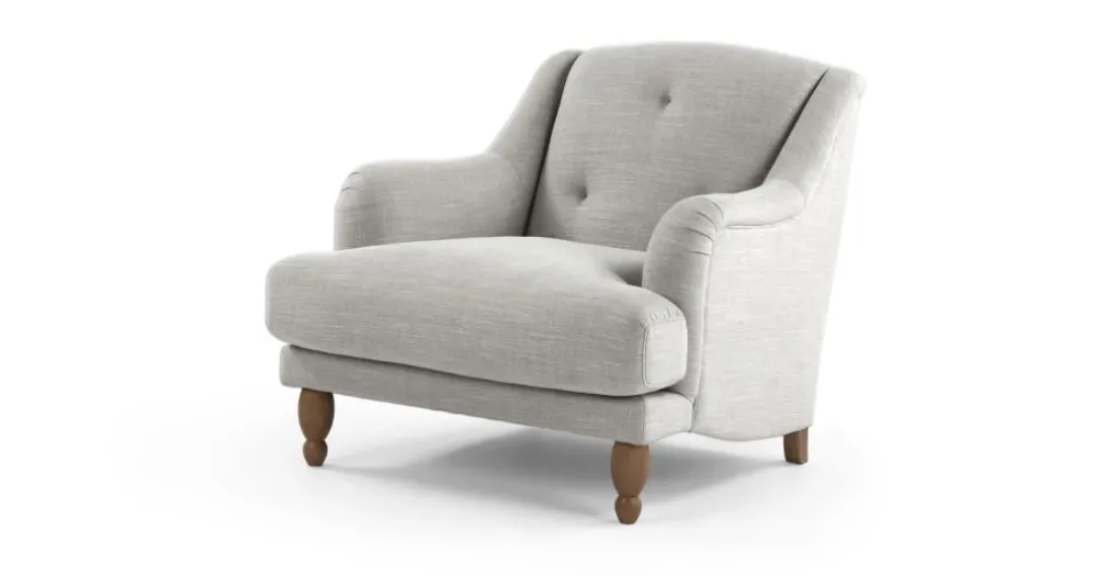 Sus detalles de diseño clásico, como las patas torneadas, la espalda con hoyuelos y la silueta suave hacen de este Sillón el aliado perfecto para darle a tu hogar el toque de elegancia que deseas. La suave tapicería de algodón de terciopelo junto a su espuma visco elástica agrega un toque espléndido a la pieza.