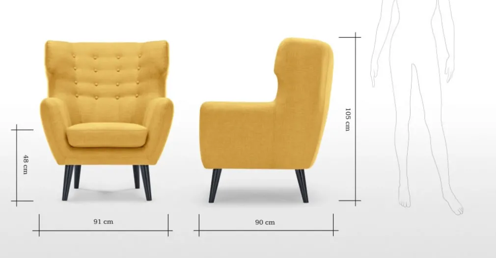 Yolodecoro te trae el Sillón Kubrick, su estilo con líneas curvas y patas en angulo son una versión inspirada de los años 60, el diseño clásico de la silla con su respaldo en ala son un giro retro a lo sofisticado, el detalle del botón agrega estructura y textura al respaldo, Kubrick te ofrece una comodidad de lujo por la forma envolvelte del respaldo alto y la suavidad de la espuma viscoelástica que posee el tapizado de terciopélo de algodón poliester complementan las cualidades para que este Sillón brinde una suavidad máxima y por ende bienestar para quienes lo usan.