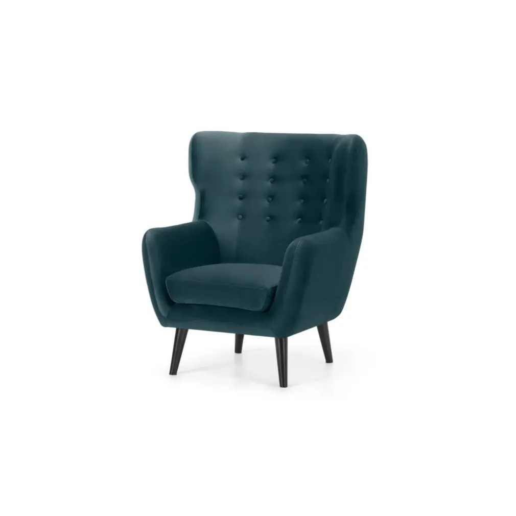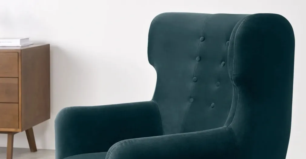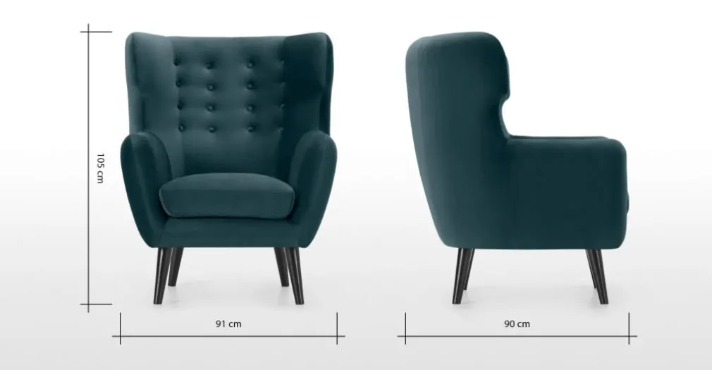 Yolodecoro te trae el Sillón Kubrick, su estilo con líneas curvas y patas en angulo son una versión inspirada de los años 60, el diseño clásico de la silla con su respaldo en ala son un giro retro a lo sofisticado, el detalle del botón agrega estructura y textura al respaldo, Kubrick te ofrece una comodidad de lujo por la forma envolvelte del respaldo alto y la suavidad de la espuma viscoelástica que posee el tapizado de terciopélo de algodón poliester complementan las cualidades para que este Sillón brinde una suavidad máxima y por ende bienestar para quienes lo usan.