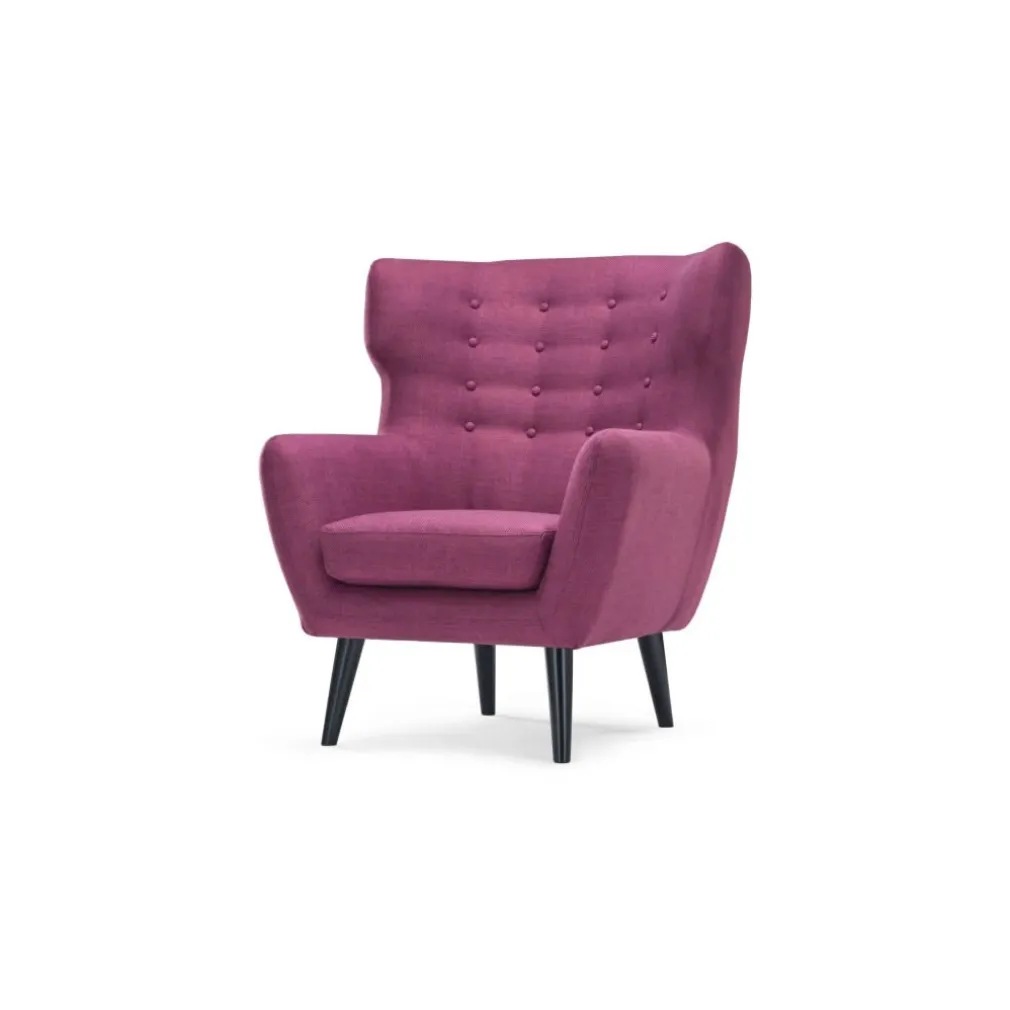 Yolodecoro te trae el Sillón Kubrick, su estilo con líneas curvas y patas en angulo son una versión inspirada de los años 60, el diseño clásico de la silla con su respaldo en ala son un giro retro a lo sofisticado, el detalle del botón agrega estructura y textura al respaldo, Kubrick te ofrece una comodidad de lujo por la forma envolvelte del respaldo alto y la suavidad de la espuma viscoelástica que posee el tapizado de terciopélo de algodón poliester complementan las cualidades para que este Sillón brinde una suavidad máxima y por ende bienestar para quienes lo usan.