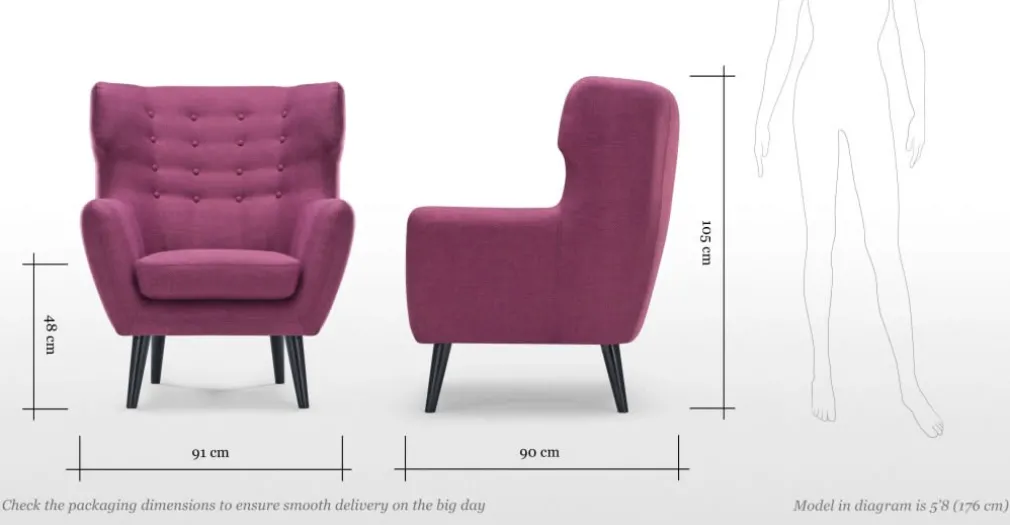 Medidas de Sillón: Alto: 105 cm | Largo: 91 cm | Profundo: 90 cm