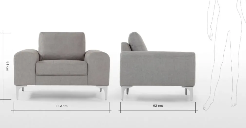 Medidas de Sillón: Alto: 81 cm | Largo: 112 cm | Profundo: 92 cm