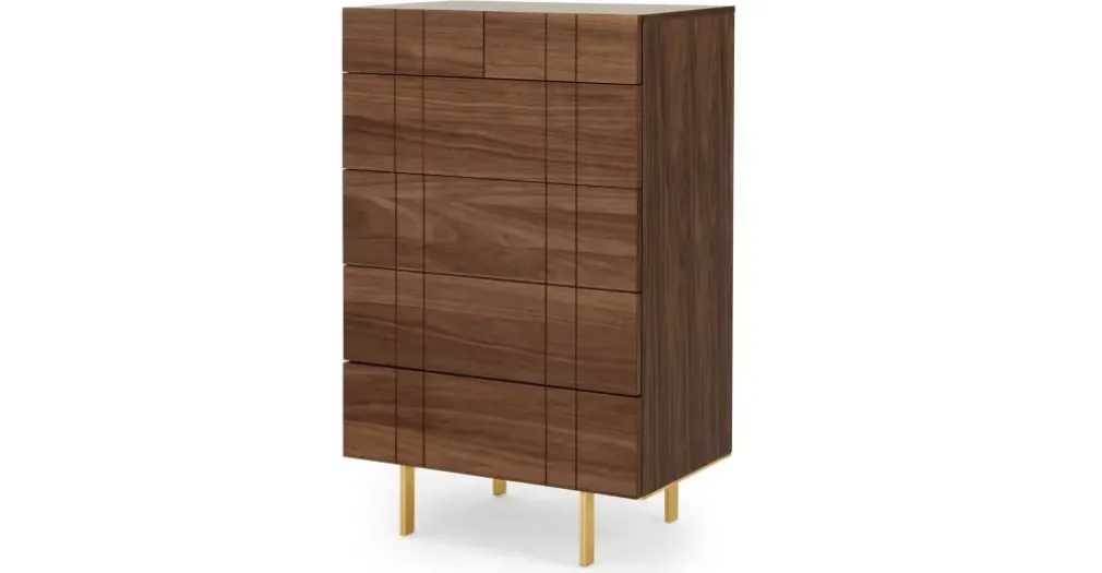 Amplia y distinguida es la Cómoda Alta Keaton – Nogal, una pieza importante al momento de ordenar tu habitación, sus líneas geometrías se aprecian en el cada uno de sus cajones siendo uno de sus atractivos, patas de acabado dorado. Sin duda YoloDecoro siempre está trayendo para ti, mobiliario para embellecer el espacio predilecto de tu hogar, sin dejar de lado lo funcional.