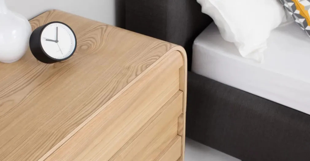 La tecnología de primera aplicada a la elaboración de este mueble logra doblar láminas de MDF para dar paso a esta bella obra rodeada de detalles que impresionan.