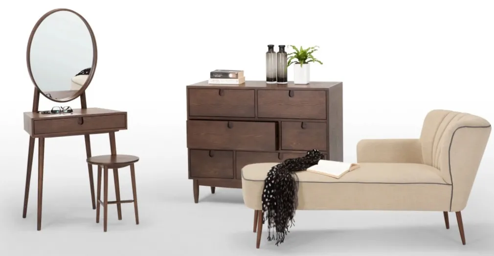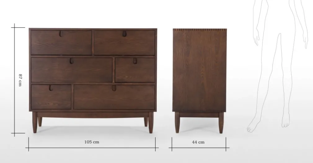 Una pieza de estilo escandinavo para tu dormitorio, es la Cómoda Penn, su original diseño confronta un ambiente cálido en tu habitación, perfecta para mantener la ropa y otros artículos almacenados.