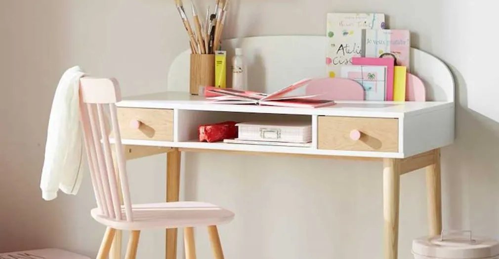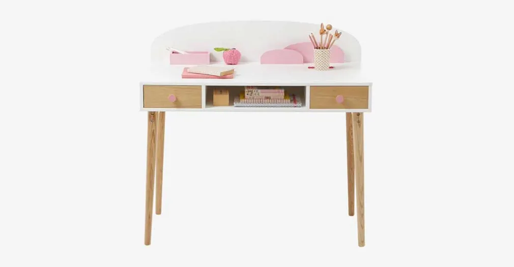 El Escritorio Carroll – Rosa de estilo elegante y moderno hacen de esta mesa de estudio una adición bienvenida al espacio de arte o tarea de su hija. Con una amplia superficie y dos cajones, es tan funcional como único.