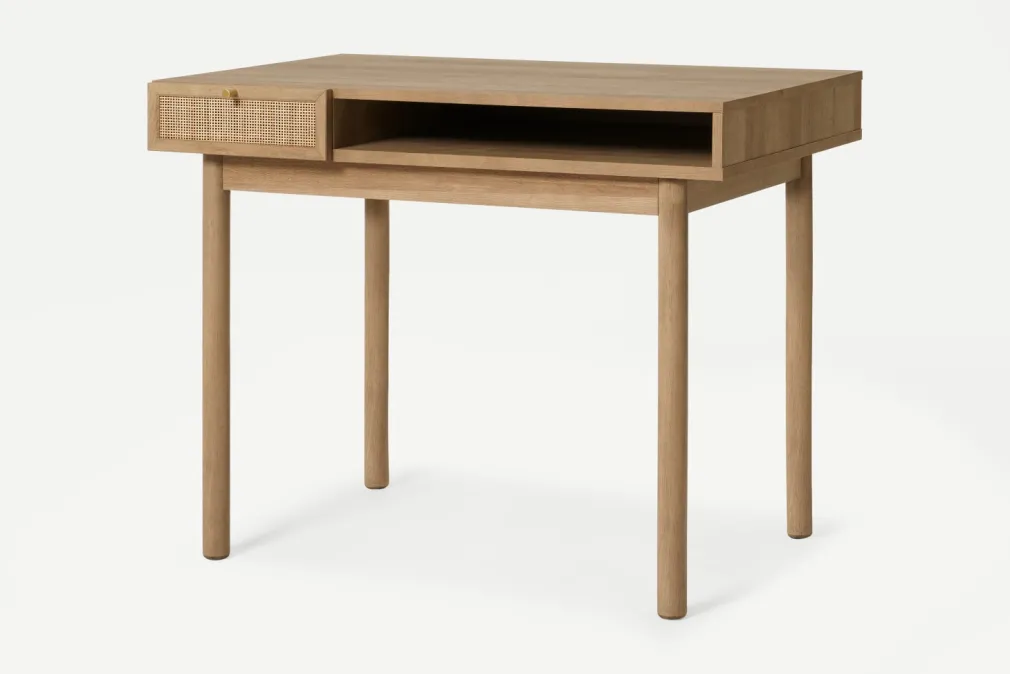 Escritorio Compacto Pavia – Natural Oak y Ratán