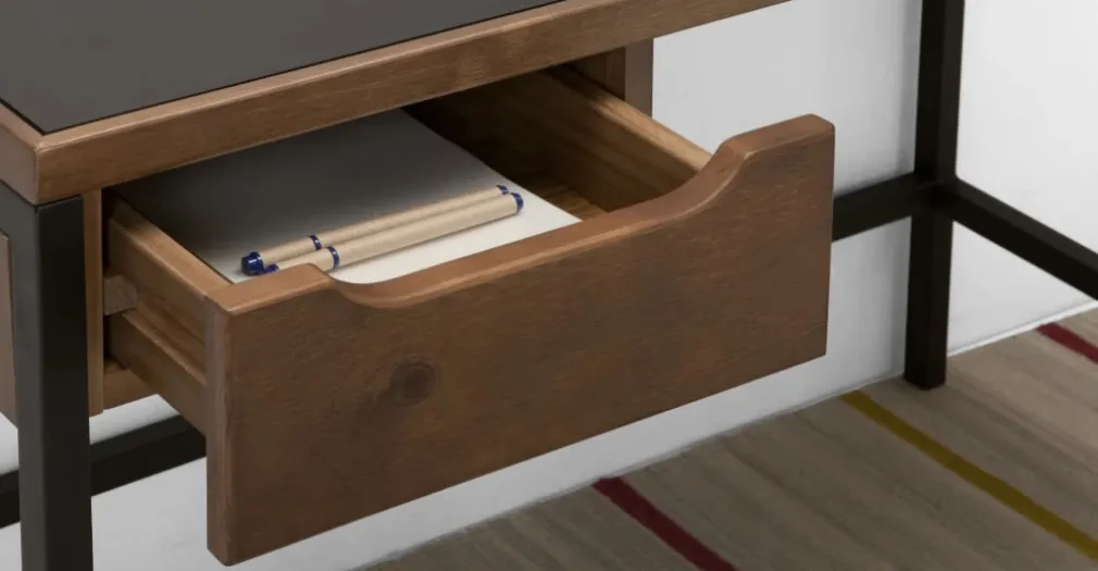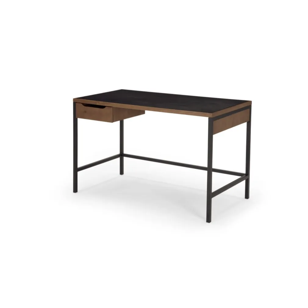 Con una estética basada en el contraste de materiales como el MDF y el fierro este escritorio te ofrece múltiples ventajas, con una amplia superficie puedes organizar tus documentos para desarrollar tus ideas teniendo todo a la mano.