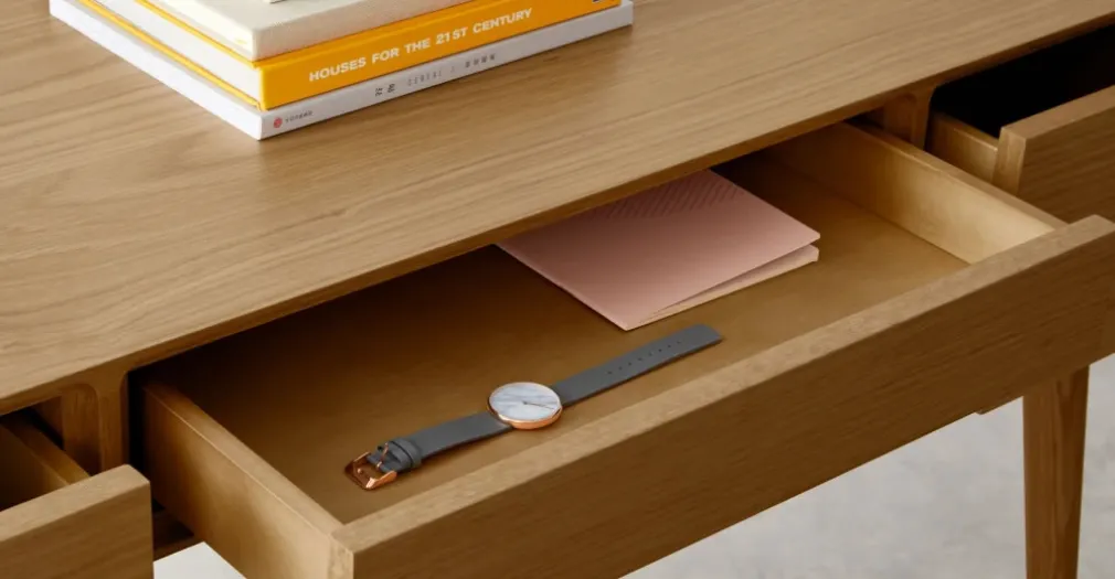 Las tendencias en decoración marcan la pauta con este diseño de Escritorio Glenn en MDF laminado color roble seleccionado con el más alto criterio de normas de calidad y acabados impecables.