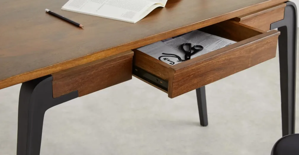 Hay multitud de variedades cada una con sus méritos, pero el Escritorio Lucien se destaca entre todos porque es una pieza única con variaciones naturales de madera de tornillo que logra un acabado único en este mueble.