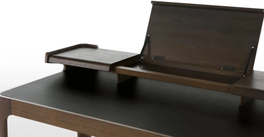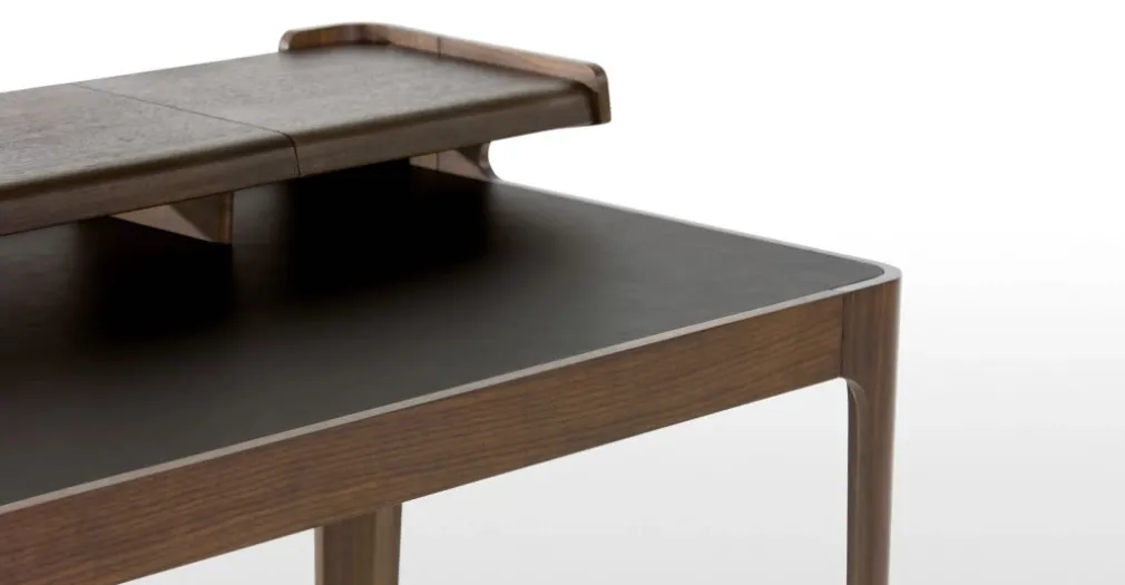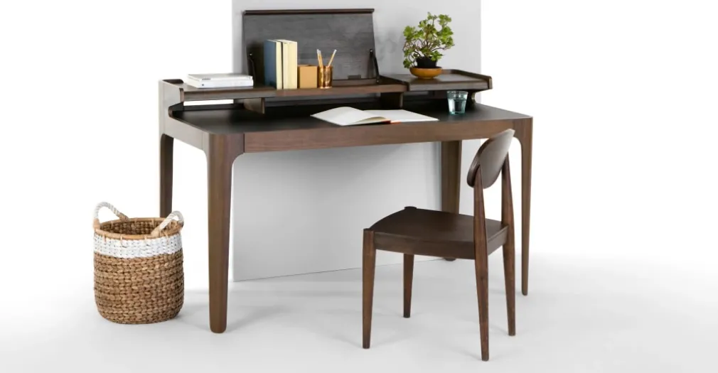 Los ambientes de vanguardia vislumbran con un escritorio Zeke como un clásico de la paleta cromática y una composición en MDF que se asemeja a la reconocida madera nogal.