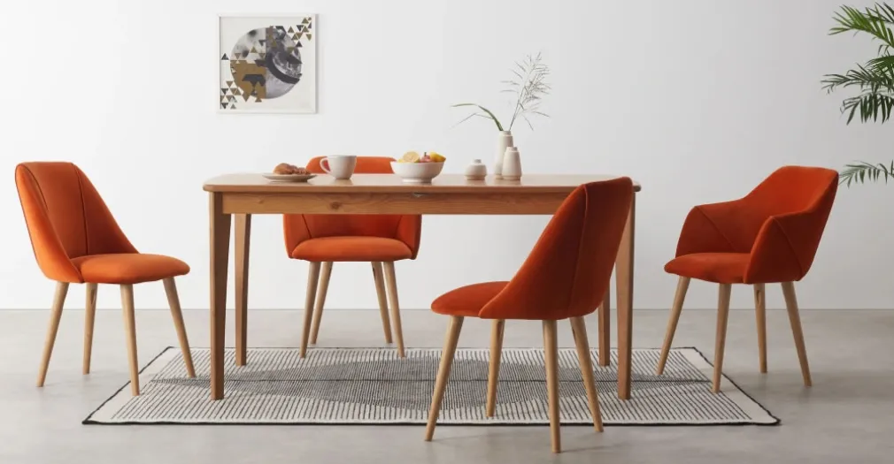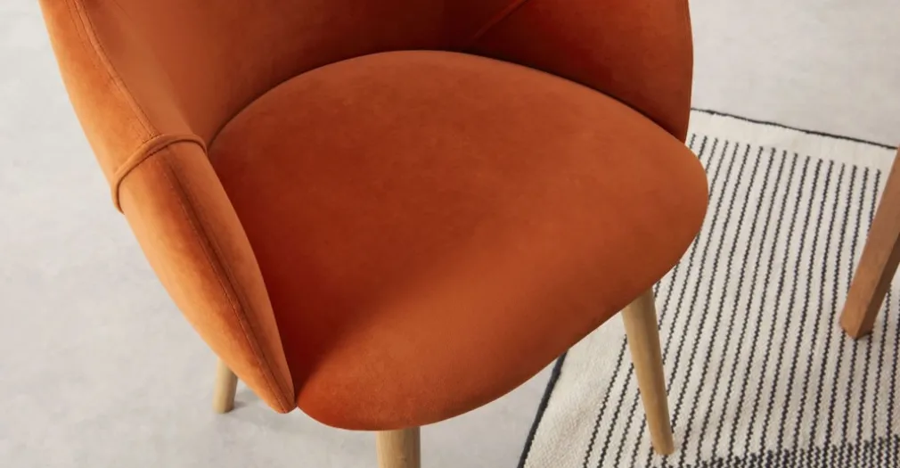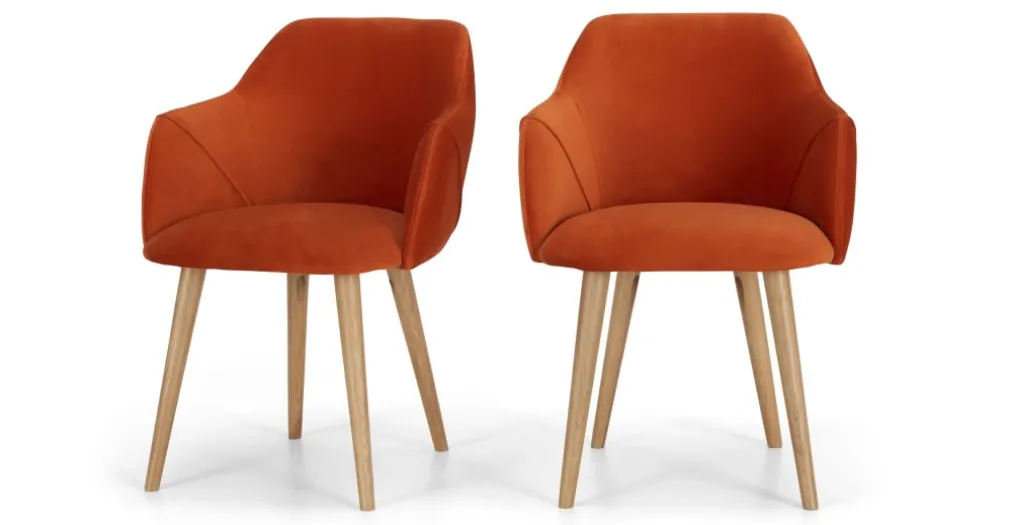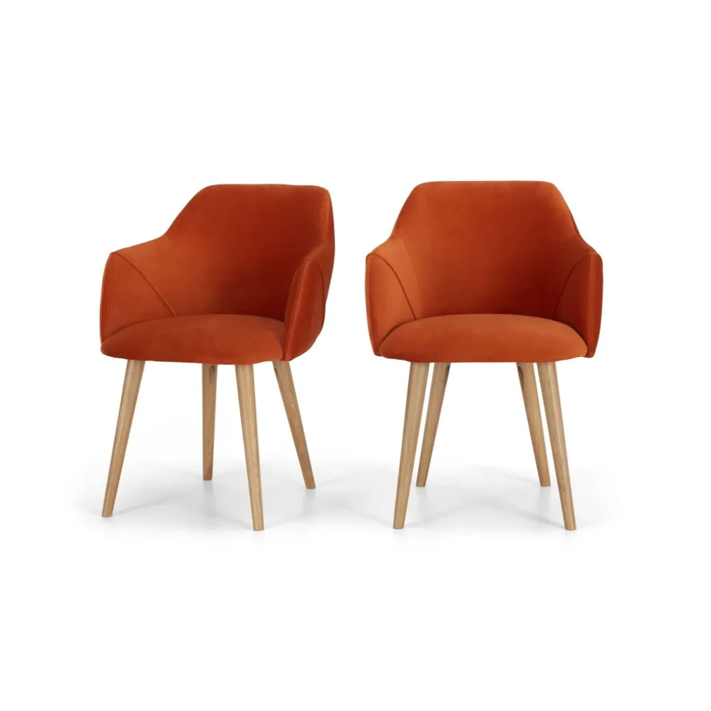 Juego de 2 sillas de comedor con reposabrazos Lule – Terciopelo naranja llama y roble
