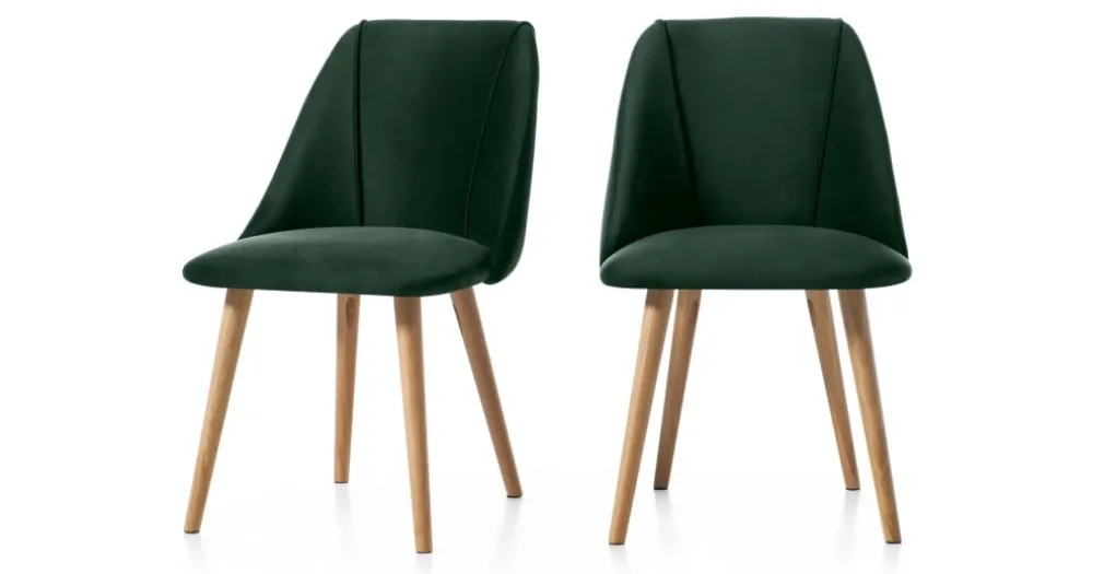Juego de 2 sillas de comedor Lule – Terciopelo verde pino y roble