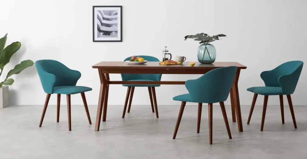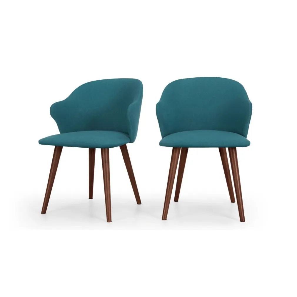 Juego de 2 sillas de comedor Sigrid – Azul mineral y nogal