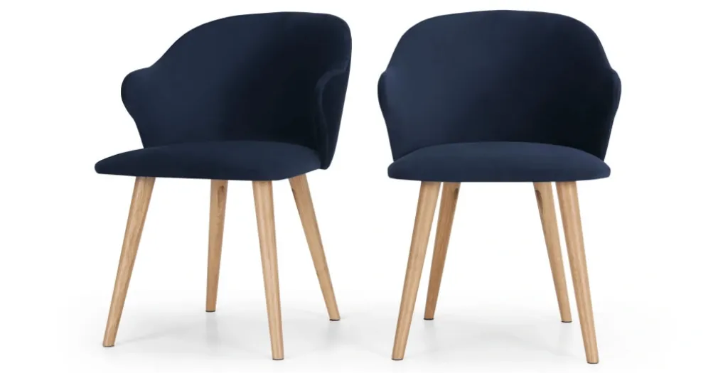 Juego de 2 sillas de comedor Sigrid – Terciopelo azul real y roble