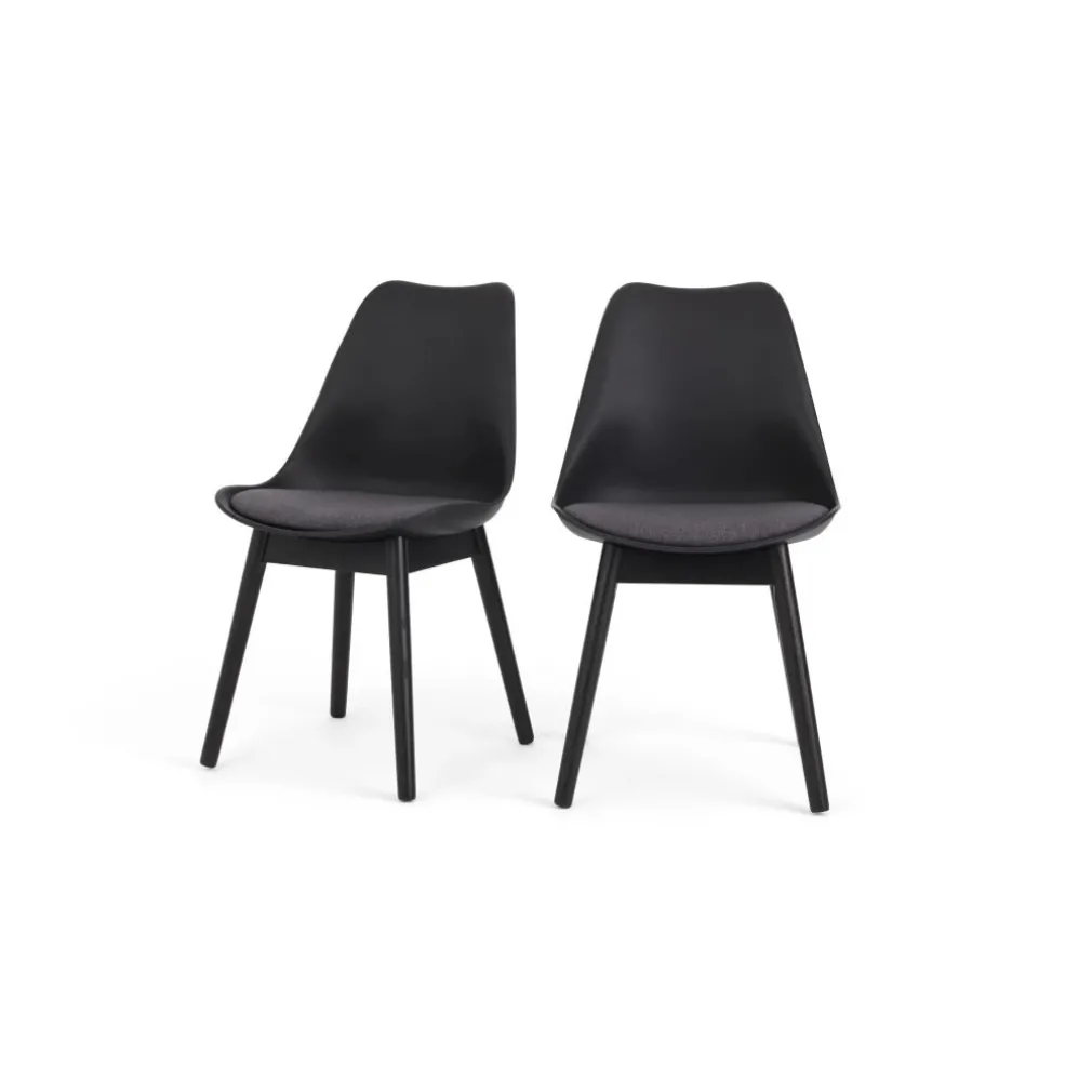 Juego de 2 sillas de comedor Thelma – Tejido negro y gris
