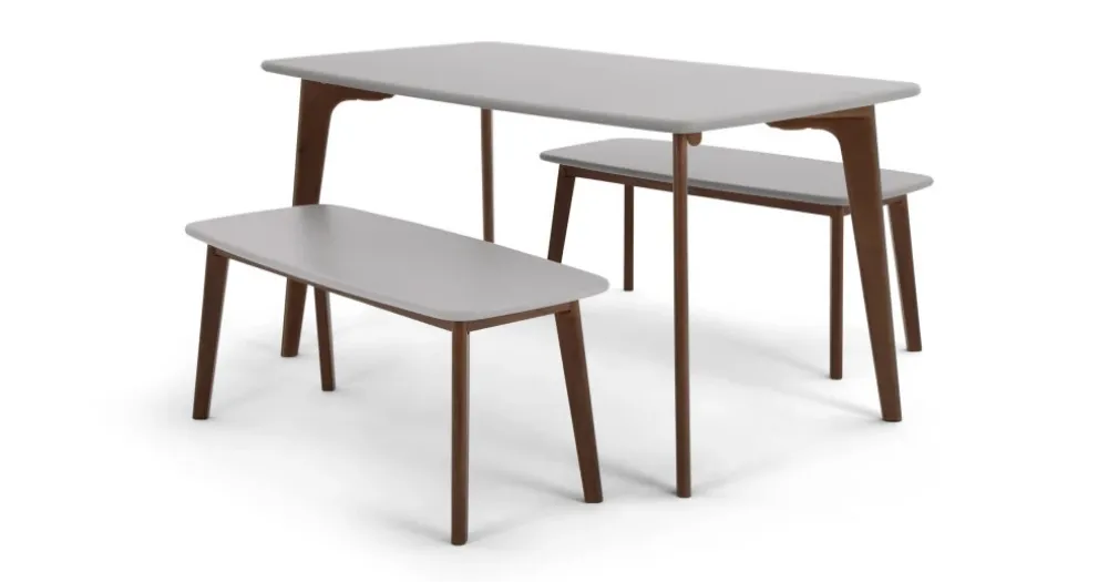 Juego de Bancos y Mesa de Comedor Rectangular Fjord – Roble Oscuro y Gris