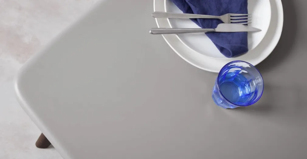 Conformado por una Mesa de Comedor rectangular en madera laminada en roble oscuro lacado en gris, apoyada en 4 patas de madera, de alta resistencia y muy adecuado para uso diario y exteriores.