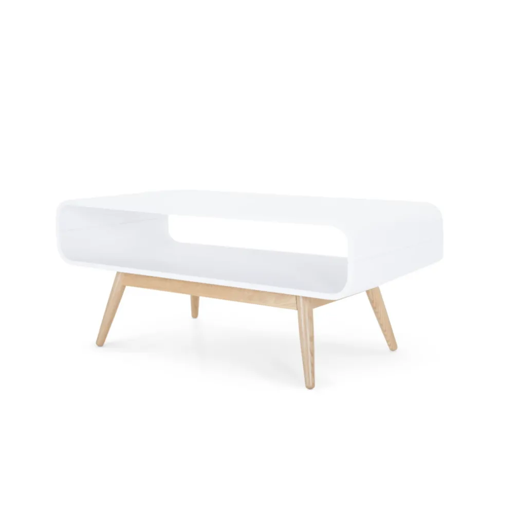 Mesa de Centro Compacta Esme – Blanco y fresno