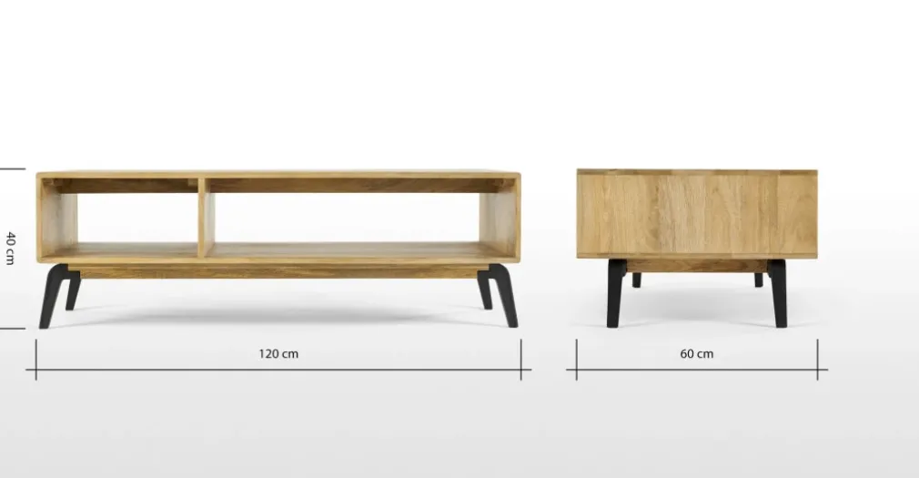 En combinación con la madera esta pieza luce patas de metal con acabados en negro mate en un diseño elegante que la convierte en tu aliada para las modificaciones y sustitución de muebles.