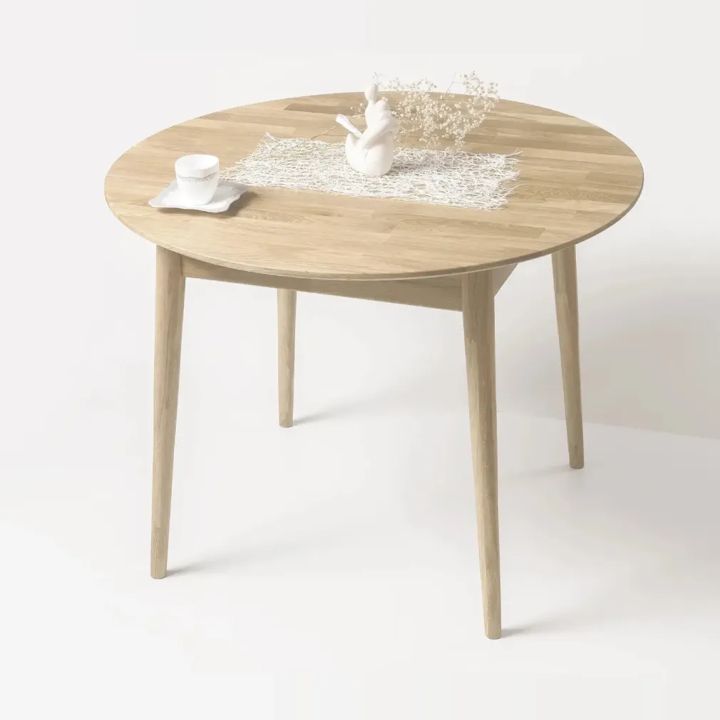 Es una mesa redonda de inconfundible estilo nórdico, ideal para tu comedor. Perfecta en funcionalidad y diseño, fácil de limpiar con un paño suave ligeramente húmedo.