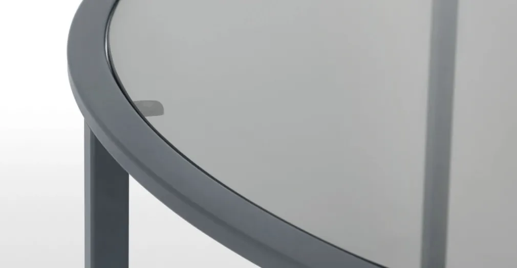 Mesa de Comedor Redonda Poppy – Metal y Cristal Ahumado