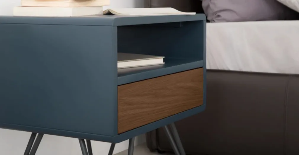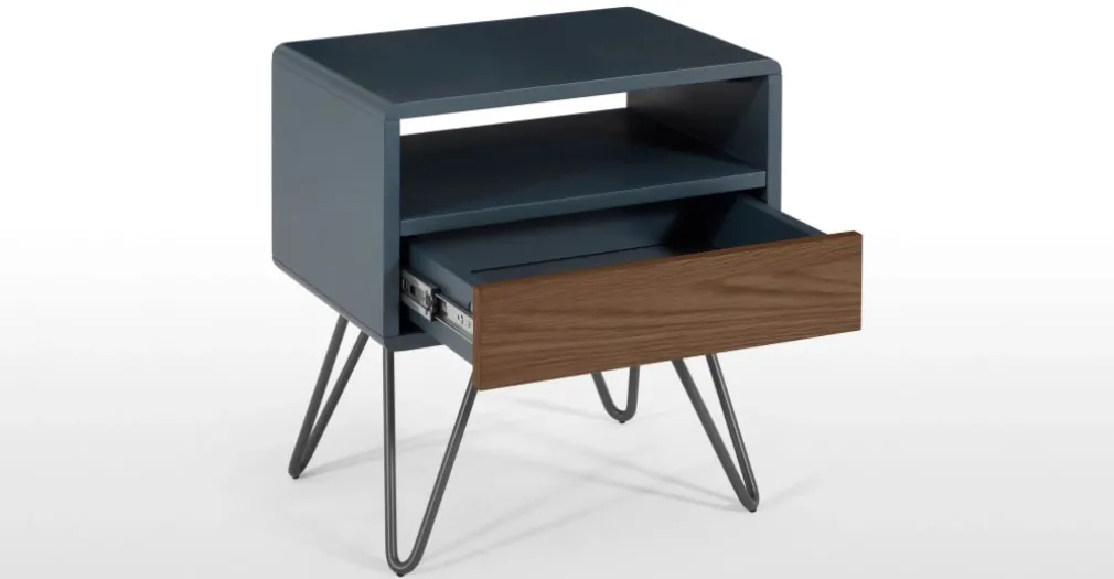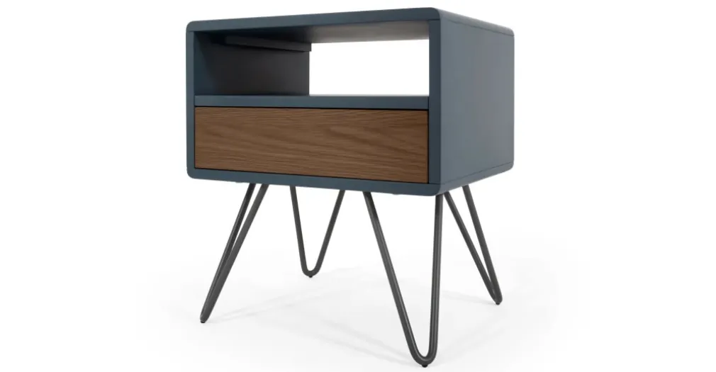 Mesa de noche Ukan – Azul y roble oscuro