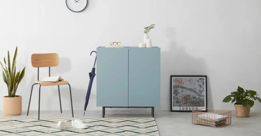 Mueble para recibidor Mino – Roble y azul
