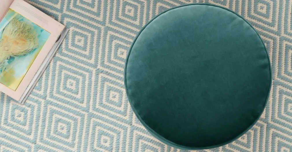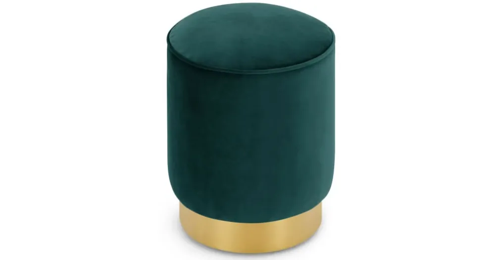 Con suave tapiz y base color dorado, esta fabricado el Puf Pequeño con Base de Acero Inoxidable Hetherington, perfecto para reposar los pies o como asiento adicional cuando tienes invitados.