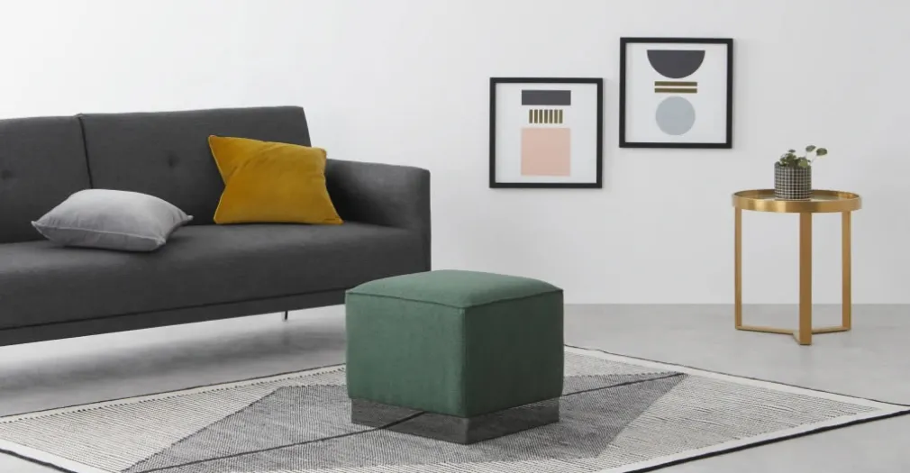 Con suave tapiz y base color niquel, esta fabricado el Puf Cuadrado Hetherington, perfecto para reposar los pies o como asiento adicional cuando tienes invitados.