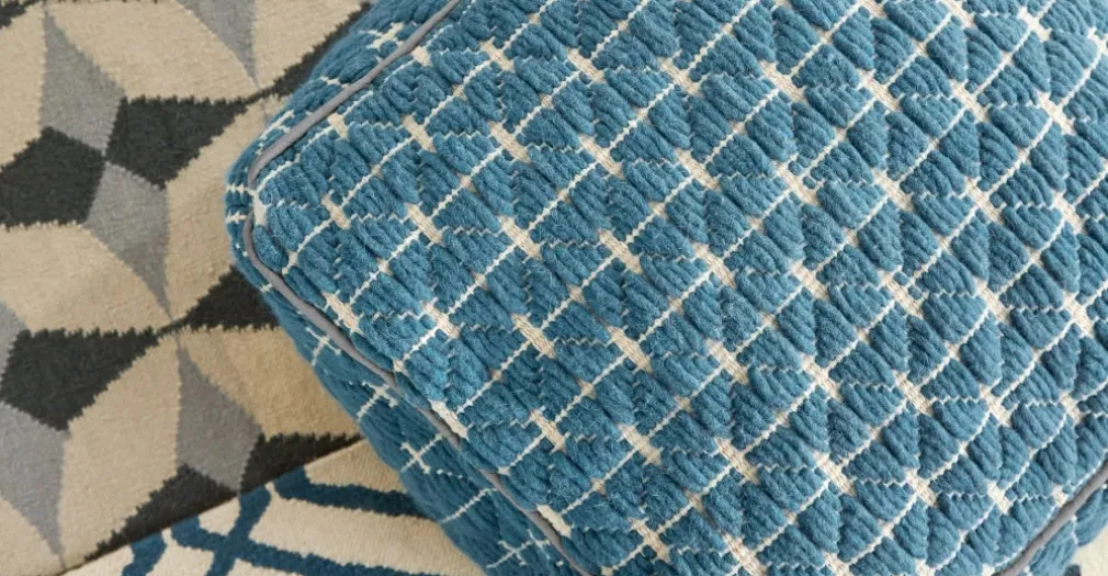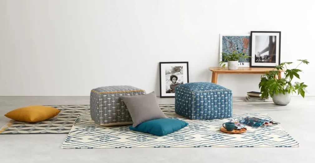 El Puff Geométrico Maddox, de equilibrio perfecto de motivos marroquíes e influencia escandinava, es una opción fabulosa para agregar textura y calidez donde lo ubiques.