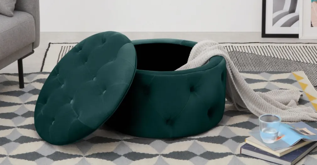Con detalles simples y llamativos esta compuesto nuestro Puf Redondo Pequeño con Almacenaje Hampton, un esclusivo puf que trae elegancia y funcionalidad para tu hogar. Hampton es multifuncional, puedes utilizar su amplio almacenaje para guardar tus revistas favoritas u otros, tambien como mesa auxiliar o para recibir a tus invitados y puedan disfrutar de su confort.